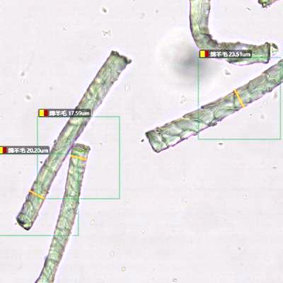 单次可分析2000根纤维,可查看每一根纤维的图像和直径标记。